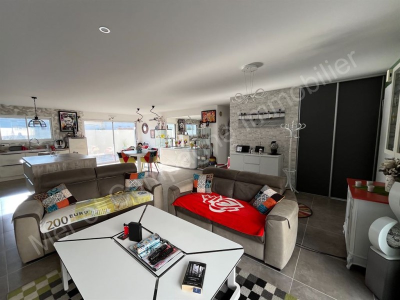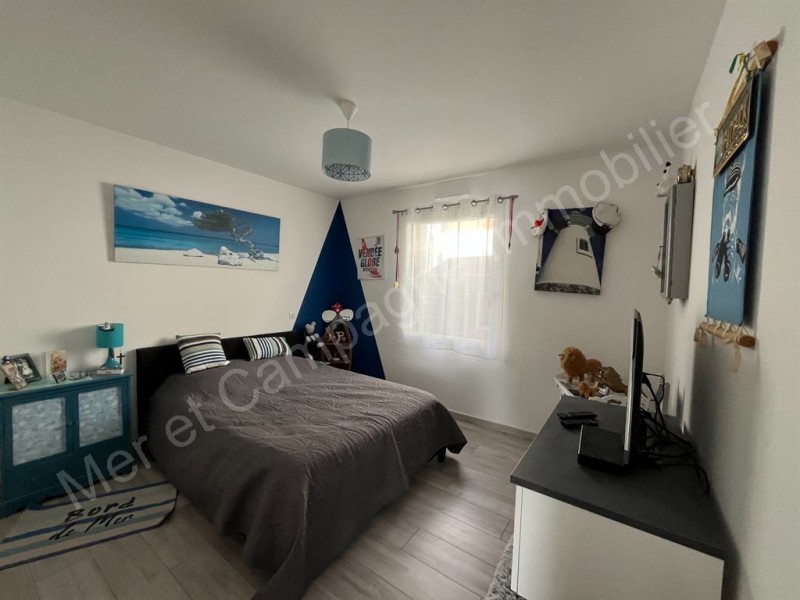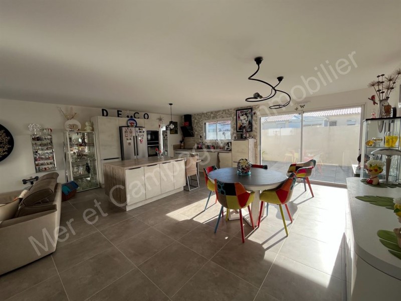 Idéalement située à seulement 80 m de la plage et de la mer du Pied de Chaume, à 800 m du centre de la Parée et à 1,2 km à pied du centre de Brétignolles-sur-Mer, cette maison récente (2021) aux normes RT2012 et P.M.R., offre tout le confort moderne dans un cadre privilégié. Édifiée sur une parcelle close de 385 m² , elle développe une surface habitable de 126,81 m² de plain-pied, complétée par un grand garage avec galetas (44,49 m²) et un cellier isolé avec accès direct à la maison. La maison comprend: une entrée avec placard, un Salon-séjour-cuisine aménagée, un dégagement avec placard, un bureau, une salle d'eau, une 1ère chambre avec placard, un WC suspendu avec un lave mains, une seconde chambre avec une salle d'eau, et une troisième chambre avec un dressing. Idéale pour une maison de Famille en toutes saisons.